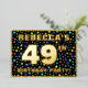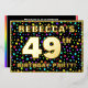 The front of this upbeat forty-ninth birthday celebration foil invitation card design features a customisable name, a large number “49th”, the message “BIRTHDAY PARTY!”, and a border. The background of the front has a fun, multicolored pattern of stars. The back features personalised details about the event, such as the date, time, location, and any other important information. Personalised invitations like these might be a fun way to invite guests/attendees to a birthday gathering/party being held to honour somebody’s 49th birthday. [~Z0000600]