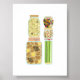 This food canning jars poster has several jars of canned vegetables, some are even pickled. This is group #4. This print is in a very modern graphic style with a mid century modern black ink print on top. Transfer this food canning jars print to other wall products if you want and it can be made bigger if you need it larger. See the collection to mix and match with other vegetable or pickle prints not in this print.