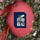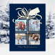 Add 4 of your winter photos to this present wrapped in a real gold metallic ribbon with a navy blue background. Customise with your family name and show the world some holiday family fun.