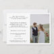 Flip the card to discover a heartfelt wedding announcement, elegantly framed and leading into the warm invitation to your wedding after party reception celebration. A fourth wedding photo—carefully selected by you—serves as a personal backdrop to the details of your soirée, creating an intimate connection with each recipient. Every word is tastefully arranged to invite your guests into the heart of your celebration, ensuring they know just how important their presence is to the continuation of your love story. Include your wedding website to entice your guests to see more photos of your nuptials, and give their rsvp's on your wedding website.