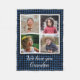 4 Photo Collage Blue Buffalo Plaid Grandpa Fleece Blanket