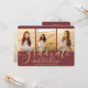 Share the joy of a high school or college graduation and invite family and friends to celebrate with these custom 4 photo collage burgundy and gold invitations. All pictures and wording are simple to personalise. (IMAGE PLACEMENT TIP: An easy way to centre a photo exactly how you want is to crop it before uploading to the Zazzle website.) This template is formatted for a graduation party, but can easily be customised as an open house invite or announcement card. Simply change the text to include any details of your choice, such as parents' names, special honours, degree title, favourite inspirational quote, graduate's future plans or new address. If there's any text not wanted simply delete it. Design features a maroon red background, faux foil mortar board cap, handwritten style script calligraphy, modern minimalist typography, and four photos of your choice, such as senior pictures or images from the commencement ceremony. Please note that gold is printed colour, not metallic foil. This elegant graduation invitation card is a trendy and chic way to begin your special day celebration. Congratulations to the graduate!