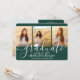 Share the joy of a high school or college graduation and invite family and friends to celebrate with these custom 4 photo collage green and white invitations. All pictures and wording are simple to personalize. (IMAGE PLACEMENT TIP: An easy way to center a photo exactly how you want is to crop it before uploading to the Zazzle website.) This template is formatted for a graduation party, but can easily be customized as an open house invite or announcement card. Simply change the text to include any details of your choice, such as parents' names, special honors, degree title, favorite inspirational quote, graduate's future plans or new address. If there's any text not wanted simply delete it. Design features a dark green background, white mortar board cap, handwritten style script calligraphy, modern minimalist typography, and four photos of your choice, such as senior pictures or images from the commencement ceremony. This elegant graduation invitation card is a trendy and chic way to begin your special day celebration. Congratulations to the graduate!