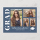 Proudly announce your high school or college graduation with these custom 4 photo collage postcards in dusty blue and white colours. Just drop in your personal photos and if needed, use the design tool to crop them for the perfect fit. You can even customise the background colour to one of your choice. These stylish cards can easily become your personal grad party invitations by simply changing the text as needed. To see more items like this, visit my store here at "www.Zazzle.com/LakeViewCardCo". Thanks