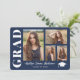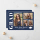 4 Photo Collage Modern Script Navy Blue Grad Announcement