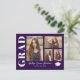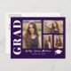 Proudly announce your high school or college graduation with these custom 4 photo collage postcards in purple and white colours. Just drop in your personal photos and if needed, use the design tool to crop them for the perfect fit. You can even customise the background colour to one of your choice. These stylish cards can easily become your personal grad party invitations by simply changing the text as needed. To see more items like this, visit my store here at "www.Zazzle.com/LakeViewCardCo". Thanks