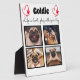 Celebrate your best friend with a custom Photo Collage. When you have so many fun memories and photos, one photo isn't enough. This plaque has 4 photos, a quote, and you can personalise the name of your pet. You can also change the colour of the paw print. To customise, you can change the colour and font, enter your own quote, and upload your own photos or even change the background colour. Whether you have a new puppy, or you just want to memorialise all your special moments, every dog deserves a personalised family keepsake.