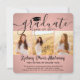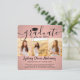 Share the joy of a high school or college graduation for her with these square custom 4 photo collage pink and black announcements. All pictures and wording are simple to personalise. (IMAGE PLACEMENT TIP: An easy way to centre a photo exactly how you want is to crop it before uploading to the Zazzle website.) This template can be customised with any details of your choice, such as party invitation info, parents' names, special honours, degree title, favourite inspirational quote, graduate's contact info, future education plans, or new job position. Design features a rose gold faux foil background, black mortar board cap, handwritten style script calligraphy, modern minimalist typography, and four photos of your choice, such as senior pictures or images from the commencement ceremony. Please note that rose gold is printed colour, not metallic foil. These elegant graduation announcement cards are a trendy and chic way to share your special day celebration with family and friends. Congratulations to the graduate!