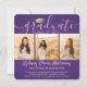 4 Photo Graduation Collage Modern Purple and Gold Announcement