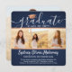 Share the joy of a high school or college graduation with custom 4 photo collage navy blue, white and faux copper square announcements. All pictures and wording are simple to personalize. (IMAGE PLACEMENT TIP: An easy way to center a photo exactly how you want is to crop it before uploading to the Zazzle website.) This template can be customized with any details of your choice, such as party invitation info, parents' names, special honors, degree title, favorite inspirational quote, graduate's contact info, future education plans, or new job position. Design features a dark blue ombre background, faux foil mortar board cap, handwritten style script calligraphy, modern minimalist typography, and four photos of your choice, such as senior pictures or images from the commencement ceremony. Please note that copper is printed color, not metallic foil. These elegant graduation announcement cards are a trendy and chic way to share your special day celebration with family and friends. Congratulations to the graduate!