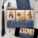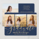 4 Photo Graduation Collage Script Navy Blue & Gold Announcement