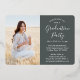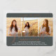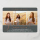Invite family and friends to celebrate a high school or college graduation with stylish custom 4 photo collage grey, white and rose gold foil invitations. All pictures and wording are simple to personalise. (IMAGE PLACEMENT TIP: An easy way to centre a photo exactly how you want is to crop it before uploading to the Zazzle website.) Front of design is printed with real metallic foil on a grey background. It features a mortar board cap, handwritten style script calligraphy, elegant modern typography, and four photos of your choice, such as senior pictures or images from the commencement ceremony. This elegant graduation invitation card is a trendy and chic way to begin your special day celebration. Congratulations to the graduate!