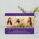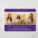 Invite family and friends to celebrate a high school or college graduation with stylish custom 4 photo collage purple, white and gold foil invitations. All pictures and wording are simple to personalise. (IMAGE PLACEMENT TIP: An easy way to centre a photo exactly how you want is to crop it before uploading to the Zazzle website.) Front of design is printed with real metallic foil on a purple background. It features a mortar board cap, handwritten style script calligraphy, elegant modern typography, and four photos of your choice, such as senior pictures or images from the commencement ceremony. This elegant graduation invitation card is a trendy and chic way to begin your special day celebration. Congratulations to the graduate!