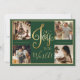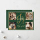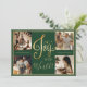 Joy to the world 4 photo collage holiday card. Deep rich holiday green background. Add your favourite family pictures to personalise. Add your personal message on reverse side of the card. Change the year on the back of the card. Elegant. So simple, yet chic.
