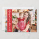 Modern holiday greeting card featuring a full-bleed customisable photo on the front with a red vertical overlay band on the left, highlighting the wording "Merry Christmas" in white.