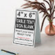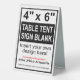 Are looking to inform your prospective customers with important information while in your place of business? Then this, double sided, 4” x 6” design your own table tent sign blank is a great way to get your message to your intended audience. These table tent signs are a great way to display your message on a countertop, office desk or display table. Pedestal signs are great for weddings, doctors offices, banks, restaurants, hotels and beauty shops and more. Discounts begin when you buy 5 or more of the same sign design.