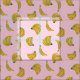 This design features a banana seamless pattern in yellow and hand drawn strokes over a pink background.