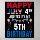 4th And Yes It's My 5th Birthday American Patrioti Poster