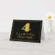 This vintage style and 1920s-1930s era style inspired birthday greeting card design features a large art deco appearance inspired number "4", the message "Happy 4th Birthday,", a customisable name, and a border pattern consisting of thin lines on the front. The background of the front is coloured black. The inside has a custom birthday greeting message, or could perhaps be cleared and left blank if a message is to be written by hand instead. A customisable birthday greeting card like this might be sent to celebrate somebody’s fourth birthday. [~Z0000498]