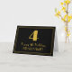 This Roaring '20s inspired and vintage appearance birthday-themed greeting card design features a large art deco look inspired number "4", the message "Happy 4th Birthday,", a customisable name, and a border pattern consisting of thin lines on the front. The background of the front is coloured black. The inside has an editable birthday greeting message, or could perhaps be cleared and left blank if a message is to be written by hand instead. A customised birthday greeting card like this might be a fun way to send a birthday greeting message to somebody who is celebrating their fourth birthday. [~Z0000463]