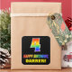 This colourful, cheerful, and fun birthday sticker design features a large number "4" and the message "HAPPY BIRTHDAY,", both coloured with a rainbow spectrum gradient inspired pattern, along with a bold yellow editable name. The background is coloured black. Fun birthday themed stickers like this might be used when wrapping a gift or present being given to somebody who is celebrating their fourth birthday, or perhaps maybe be handed out to the attendees at a birthday celebration. [~Z0000480]