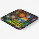 This exciting and cheerful birthday themed paper plate design features a large number “4” with a colourful rainbow spectrum inspired gradient pattern, along with the message “HAPPY 4th BIRTHDAY,”, and a personalised name. The background of the front has a vibrant, multicolored pattern that resembles bursting celebratory fireworks. Joyful birthday themed paper plates like this might be used at a party celebrating somebody’s 4th birthday. [~Z0000604]