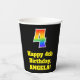 This exciting and colourful birthday themed paper cup design features a large number “4” having a rainbow spectrum gradient inspired pattern. It also features the message “Happy 4th Birthday,”, and a custom name. The background is coloured black. Vibrant, colourful paper cups like this might be fun to use at a birthday celebration being held to celebrate somebody’s 4th birthday. [~Z0000537]