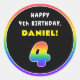 4th Birthday: Colourful Rainbow # 4, Custom Name Classic Round Sticker