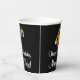This elegant, luxurious, and sophisticated birthday-themed paper cup design features a large ordinal number “4th” having an imitation/faux gold-inspired look, in addition to the birthday greeting message “Happy 4th Birthday,” and an editable name in a script-style font. It also has a black-coloured background. Birthday themed paper cups like this might be used at a party celebrating somebody’s 4th birthday. [~Z0000538]