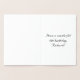 The front of this formal and fancy birthday-themed foil greeting card design features the message “Happy 4th Birthday,” in elaborate script style text. The inside has a custom birthday greeting message, or could perhaps be cleared and left blank if a message is to be written by hand instead. An elegant, personalised birthday greeting card like this might be used to celebrate somebody’s fourth birthday. [~Z0000555]