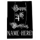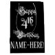 This luxurious and elegant birthday giftbag design features the message “Happy 4th Birthday,” in lavish script style text, on a black coloured background. It also features a custom recipient name. An ornate birthday themed gift bag like this might be used when giving a gift or present in celebration of somebody’s fourth birthday. [~Z0000557]