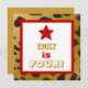 This customisable design with its square frame, red star and cheetah print is a fun and trendy way to invite folks for a fourth birthday party celebration for a 4 year old girl. All text is totally customisable. You can experiment with different paper types by clicking on the "Invitation Options" tab on the upper right hand corner. I recommend the ice hued metallic paper which gives your birthday invitation a festive shimmer and shine. Lovely!