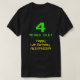 This nerdy and silly shirt design features the message "4 YEARS OLD!", the birthday greeting message "Happy 4th Birthday,", and a customisable name. The upper age digit and text feature a nerdy, green, pixelated, 8-bit graphics style appearance inspired by that of vintage computer games and classic video games. The lower greeting message has a geeky, yellow, vintage digital computing inspired look. Shirts like this might be worn by the guests of a birthday party held in celebration of somebody’s fourth birthday. [~Z0000455]