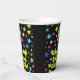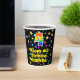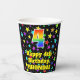 This cheerful and joyful birthday paper cup design features a large number “4” with a rainbow spectrum gradient inspired pattern, along with the message “Happy 4th Birthday,”, and a customisable name. The background features a multicolored star field inspired pattern. Colourful, vibrant paper cups like this might be fun to use at a birthday celebration/party being held to honour somebody’s fourth birthday. [~Z0000540]