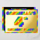 The front of this exciting and eye-catching fourth birthday celebration foil invitation card features a personalised name, a large number “4th”, the message “BIRTHDAY PARTY!”, and a border, all featuring a vibrant, colourful, rainbow spectrum inspired gradient pattern. The back features personalised details about the event, such as the date, time, place/venue, and any other important information. Joyful, fun, editable invitations like these might be used to invite guests to a birthday gathering being held to honour somebody’s 4th birthday. [~Z0000593]