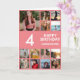 4th Birthday Photo Collage 13 Photos Pink & White Card