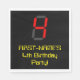 This silly and geeky birthday themed paper napkin design features a large number "4" having a red seven segment digital display inspired appearance, along with a customisable name and the message "4th Birthday Party!" in geeky retro style yellow text, on a black coloured background. Birthday themed paper napkins like this might be fun to use at a party being held to celebrate somebody’s 4th birthday. [~Z0000388]