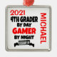 This custom ornament featuring the quote "4th Grader by Day Gamer by Night" is perfect for any fourth grader that loves playing video games.