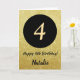 4th Happy Birthday Black and Gold Glitter Card with personalised name. For further customisation, please click the "Customise it" button and use our design tool to modify this template.