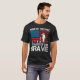 I give wanted to give this a 4 instead of a 5 because these Basic DARK T0shirts run unexpectedly SLIM or Narrow. Which is great if you do not have a potbelly, but I have a paunch. It isn't the shirt's fault that I've got a beer belly. The design and shirt itself is a quality cotton shirt. The color is more of a deep purple, but still a very pretty color. The Basic DARK T-shirts run a bit SLIMMER than the Basic Ts. The neck is a fraction narrower (or seems to be narrower) also. I'm a paunchy middle-aged woman and my neck is 12 inches (31cm) thick and the neckline fell about the same as in the photo of the man, and I had the desire to tug it a bit. So if you're a thick necked man or like loose shirts, be aware these are slimmer shirts. Once I get rid of my lockdown paunch it'll look great. The shirt washed well in cold water with no apparent bleeding. We don't have a dryer, so it hung dry. Did not shrink. Love the colors and the design. The design looks smaller on my shirt than it does on the model on-line. But still, it looks good on the shirt. The printing looks as it does on the model, just the size seems fractionally smaller. Washed garment in cold water, hung dry and design appeared unaffected.