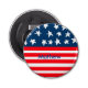 Very cute and compact little bottle opener. Also very fond of the magnet, both for sticking to the fridge and holding on to the bottle cap when trying to open it. Good quality print. As pictured.