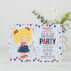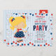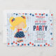 Cute, modern July 4th themed birthday party for kids. Red, dark and light blue design with stars, stripes and fireworks. Illustrated with a cute blonde girl holding a firework. Create your own birthday invitation! Some elements by Zenware Designs @ Mygrafico. ***PLEASE NOTE that if you change the font or size of the font, it may alter how your invitation prints. It will print the way you see it on your monitor. I will not see your card once you order it, and Zazzle will NOT edit anything (typos, alignment, etc.). Shown here in Basic Paper