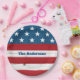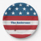 Get ready to celebrate our country as you enjoy your bbq on these striking, graphic, patriotic custom name paper plates. Navy blue bold typography overlays a weathered, country rustic wood flag background of graphic, red and white stripes and white stars on blue. Personalise with your name or a custom, special greeting. Your choice of 2 sizes: 7” or 9”. Great for Fourth of July, as well as any time of the year!