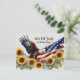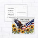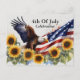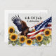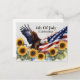 4th of July celebration BBQ party postcard invitation with an American flag, eagle, and sunflowers. Personalise it with the event details and RSVP information.