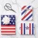 A Red White And Blue Patriotic Wrapping Paper Sheet Set For The 4th Of July Celebration Designed With American Flags, Stripes and Stars