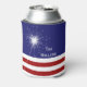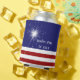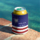 This fun can cooler is decorated with a sparkler and red and white stripes on a patriotic blue background. It is further enhanced with the saying Happy 4th of July and the family name, which is easy to customise or delete if preferred.