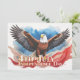 Powerful artwork featuring a bald eagle with outstretched wings and dynamic red, white, and blue elements—symbolic patriotic design for Independence Day.
