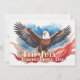 Powerful artwork featuring a bald eagle with outstretched wings and dynamic red, white, and blue elements—symbolic patriotic design for Independence Day.