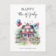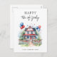 Celebrate Independence Day in style with our festive 4th of July postcard designed for realtors! Featuring a whimsical watercolor house adorned in patriotic spirit, this card is a delightful way to send warm wishes to your clients. Customise the bottom with your company name for a personal touch that reflects your commitment to celebrating home and community. Flip to the back, and add a personalised message to express your gratitude for their partnership and wish them a joyful Independence Day. Make every holiday memorable with this charming and customisable postcard!