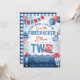 This 4th of July 2nd Birthday party invitation is designed to match our 4th of July collection! This theme is perfect for any patriotic, red, white, and blue themed birthday party. This design features watercolor fireworks, ice cream, balloons, sunglasses, beach waves and a blue watercolor background. The backside features a picnic buffalo plaid pattern that perfectly compliment the frontside.